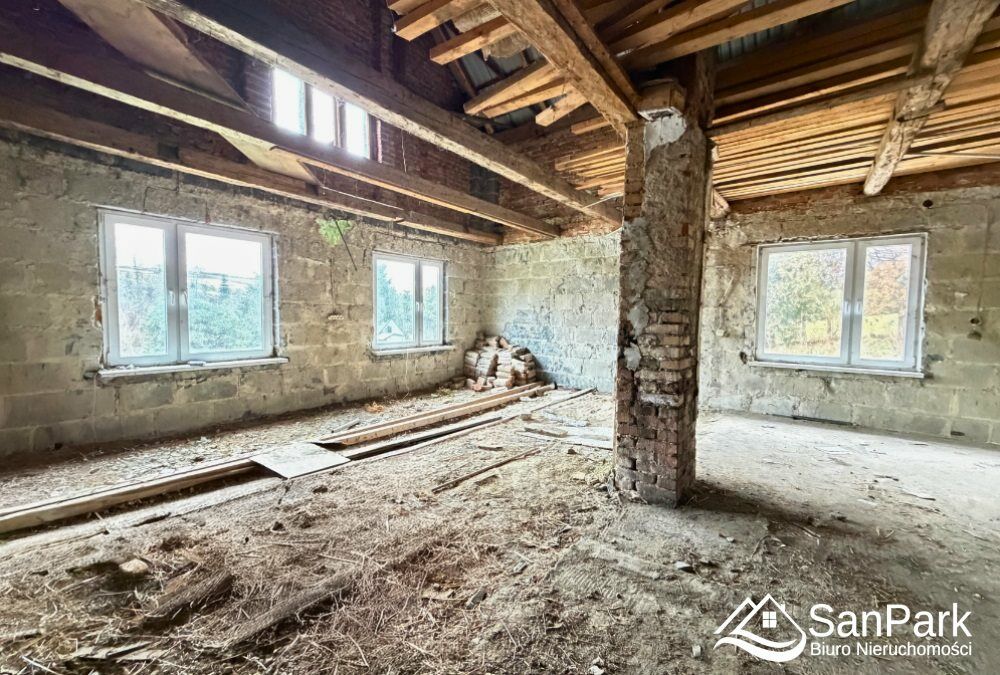 To świetna baza do stworzenia klimatycznego domu w stylu bieszczadzkim lub nowoczesnej inwestycji pod wynajem.